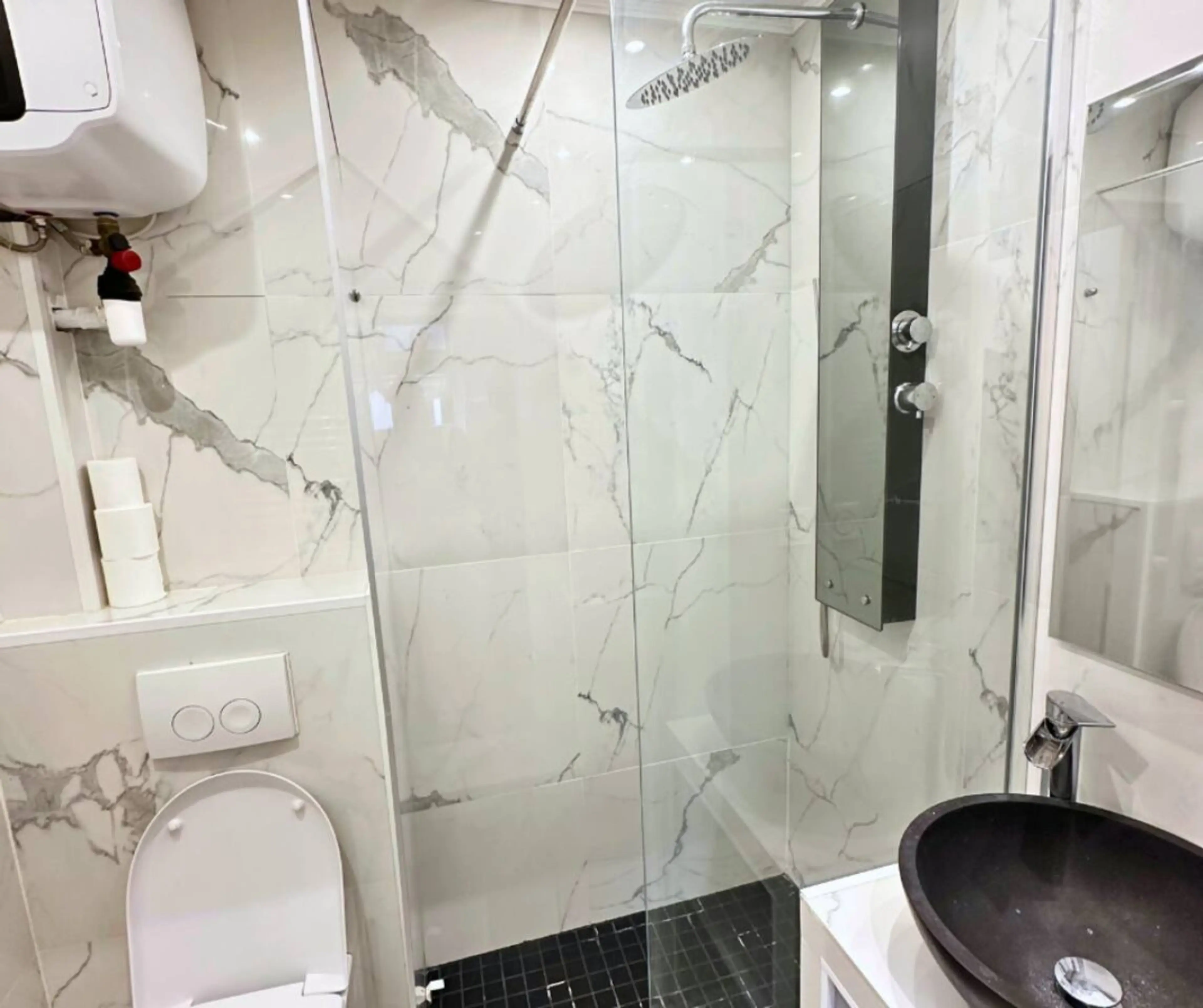 Negative: no funcionaba el agua caliente en la ducha y no había como hervir agua